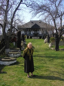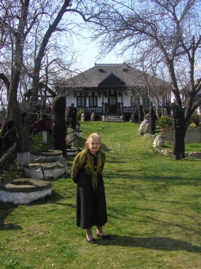 Astăzi în prispa casei de la Târpeşti ne întâmpină Elena Popa, soţia meşterului. Slăbuţă şi adusă de spate, primeşte cu atâta plăcere orice om ce-i calcă pragul, de parcă ar fi exact omul pe care-l aştepta. Uşile caselor se deschid iar timpul începe să-şi piardă sensul. Fiecare mască de Anul Nou, creaţie a soţului, are o poveste cu tâlc. La fel chipurile cioplite, de oameni. Unii sunt strâmbi, urâţi, haini, zgârciţi şi se aşează cu imaginaţie pe băncuţe: bătrân, babă, urât, drac, cucoană, doctor, ofiţer, evreu, negustor, ţigan, ţigancă, harap etc. Elena descrie orice sculptură, fiecare bucată aurie de lemn, de parcă ar avea suflet, de parcă s-ar cunoaşte de pe uliţa satului: “Uite, aicea e bogatul: gura strânsă, barba deasă ce-i acoperă pântecele şi ţine strâns în mână sacul cu bani.” – se amuză bunica, de găselniţa soţului. Apoi se apleacă şi bate uşor statuia pe cap. Nici una, nici două, găseşte apoi costumele de Anul Nou şi se îmbracă în capră cu panglici colorate. Arată dansul, aşa cum era obiceiul în sat, iar obrajii i se fac ca de purpură. O urmezi amuzat, captivat, şi vezi în ochii ei, la fiecare cuvânt, ceva magic, de poveste. E plăcerea, dublată de dragoste şi bunăvoinţă, de a vorbi despre o lume care mai există în frânturi ori în basmele copilăriei. Amiaza se pierde în ziua de primăvară şi, în ultima fotografie cu care te desparţi de loc, prinzi imaginea unei statui din grădină, deja plină de muşchi: doi oameni se ţin strâns, cu drag, în braţe. “Să mai veniţi pe la noi!” – Elena Popa ne face cu mâna din mijlocul curţii şi ne petrece cu privirea până în uliţa satului.