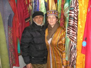 Şi totuşi există o străduţă îngustă, cotitoare, în partea mai puţin umblată a bazarului, aşa zisa parte de vechituri, pe care trebuie să o găseşti. Atelierele de meşteşugari au cam dispărut, iar zona e căutată pentru anticariate. Meşteşugarii însă mai există, adaptaţi, ce-i drept, la cerinţele zilei. Printre ei Ahmet Aglamiş seamănă cu un bunic înalt. Înfofolit din cauza zilei reci, ploioase, mi-a părut la început un om trist. Privirea îi era în pământ şi se gândea probabil că sunt încă unul dintre sutele de străini care trec pe la micul să magazin, zilnic, căutând doar chilipiruri. Pe un coridor de vreo trei metri lungime avea înşirate mulţimi colorate de haine vechi din mătase, cu broderii şi mărgele. M-a privit şi ochii i s-au luminat abea când am ales să probez o rochie pătată şi l-am întrebat de unde e haina, căci nu părea turcească. Şi Ahmet a fost numai un zâmbet: „e din Uzbekistan, eu sunt uzbek, familia mea a venit de acolo cu mărfuri. Şi ce mărfuri.” Cu ochii minţii am văzut drumuri prăfuite, pământuri îndepărtate, am ghicit oameni dragi acestui om. Am plecat într-un final de la Ahmet căci se cobora seara. Nu vroia să mai îmi lase mâna pe care o strângea cald şi dădea să o sărute cu recunoştinţă. Avea lacrimi în ochi. Cumpărasem fără să negociez, ba chiar i-am dat în plus faţă de cât ceruse. Important în toată povestea noastră e însă faptul că am ales o rochie din Uzbekistan, ţara unui om pe care merită să îl cauţi. Ahmet Aglamiş e povestitorul la care mă gândesc de fiecare dată când iarăşi, ei asta e, trebuie să merg în Marele Bazar.
