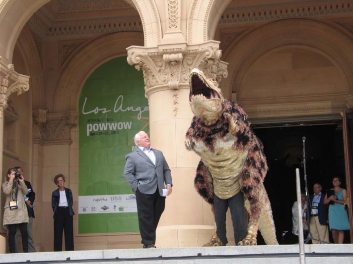Astfel a apărut Roger Dow, preşedintele US Travel Association, la conferinţa de presă de la Natural History Museum din Los Angeles. Iar momentul de PR a fost unul de mare impact. Mii de fotografii, sute de filme şi de corespondenţe de la faţa locului. Doar ne aflăm în capitala mondială a filmului unde Hollywood este demult o marcă iar spectacolul face parte din realitatea cotidiană. Circa 500 de jurnalişti internaţionali invitaţi din peste 70 de ţări – ceea ce marchează o participare record -, au savurat momentul ce a constituit un fel de antecamera pentru alte evenimente de calibru. Aşa a debutat a 44-a ediţie a International POW WOW, aici la Los Angeles, iar spectacolul cu dinozaurul a creat un moment de relaxare, urmat de un bombardament informaţional foarte bine pus la punct. Mesajul principal cu care s-au întâlnit pe parcursul a patru zile circa 5.000 de profesionişti din industrie, care lucrează la circa 1.000 firme americane, a fost perceput la dimensiunile lui reale şi de către peste 1.200 de reprezentanţi ai lumii internaţionale a călătoriilor, printre care şi travel agenţi români.