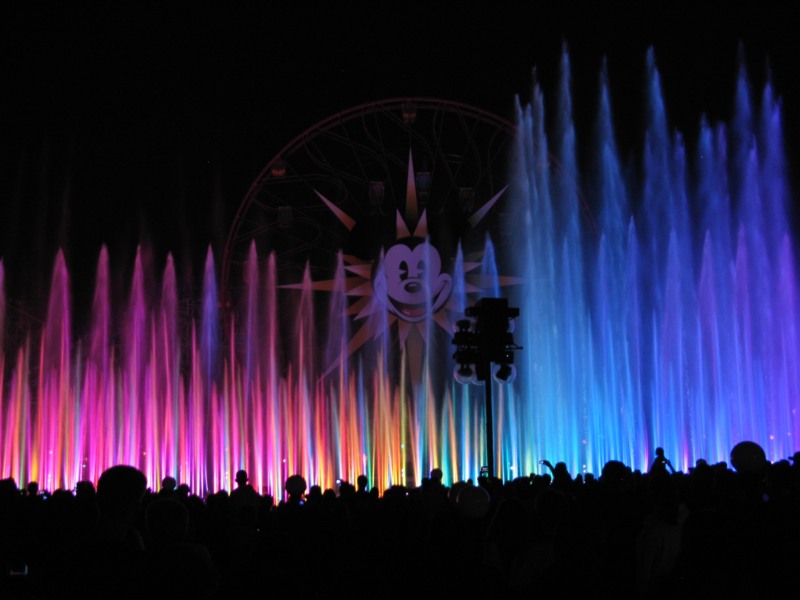 Disneyland Adventure, noua investiţie Disney din Anaheim, promovează numeroase atracţii noi inspirate mai ales din aventurile lui Mickey Mouse şi ai prietenilor lui. Centrul parcului e ocupat de marea roată a lui Mickey, în faţa căreia poţi admira un lac de dimensiuni mari. Seara, lacul e zona de atracţie a tuturor vizitatorilor deoarece aici se petrece spectacolul realizat din jocuri de lumini, sunet şi apă unde zeci de personajele din filme prind viaţă. “World of Colour” este cel mai nou spectacol al Disney California şi unul dintre cele mai fascinante din lume. Atât sub aspect tehnologic cât şi prin desfăşurările artistice. Fundalul nu este acoperit de artificii ci e asigurat de un decor… holografic. În faţa lui sunt proiectate imense jeturi arteziene şi imagini cinetice prin care sunt create contururile celor mai îndrăgite personaje din lumea Disney. Peter Pan, Frumoasa şi Bestia, Cenuşăreasa, Regele Leu, Pochahontas, Alba ca Zăpada, Mickey Mouse, Mica Sirenă şi câte altele.