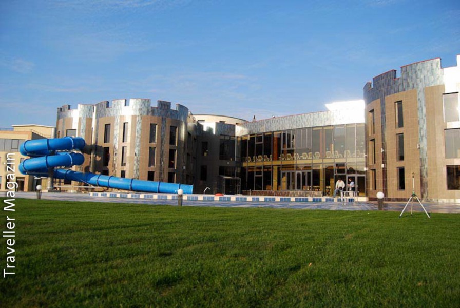 Ați fost prin Ungaria și Austria unde v-ați petrecut concedii pline de răsfăț în compexe termale și de wellness. Acum aveți posibilitatea să comparați și să apreciați investiția făcută de către Societatea Pod Serv Com, proprietar și al Hotelului President, din vecinătate, care activează pe piața serviciilor de 4 stele. Complexul hotelier oferă 92 de camere, un centru de conferințe cu 4 săli cu o capacitate maximă de 400 de persoane, piscină de noapte cu apă termală, baze de întreținere și tratament, o zonă sportivă cu terenuri de tenis și fotbal. Amatorii de delicatese românești ori internaționale se pot delecta în cele 3 restaurante cu o capacitate generoasă cuprinsă între 60 și 350 de locuri. La fel de apreciată este Terasa cu specific rustic.