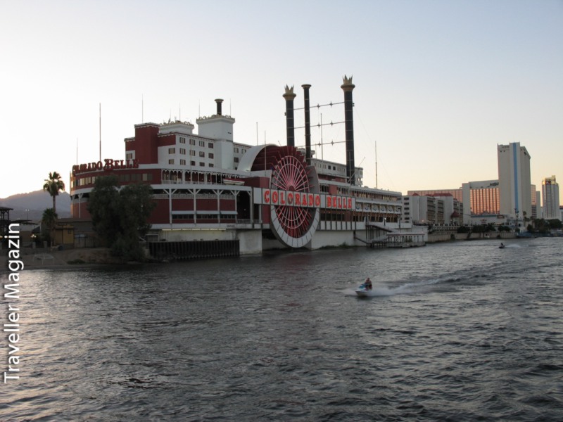 Ce-ar fi să te oprești în mijlocul deșertului Mohave și, așa deodată să vrei să faci un oraș! Simplu, cumperi o bucată de pământ și te pui pe treabă. Așa s-a născut prin anii ’60 localitatea Laughlin, situată pe malul frumosului râu Colorado. Și, evident, orașul va purta numele fondatorului. Aflat la aproximativ 150 de kilometri de Las Vegas Laughlin se distinge prin: statuia fondatorului, care evident trăiește și este respectat de toți concetățenii; prin hotelurile de lux; o plajă cu nisip; cine romantice pe navele de croazieră Colorado Belle, unele cu zbaturi, multă verdeață și, o șaradă – e Raiul locurilor de muncă. La o populație de doar 7.000 de locuitori aici există circa 20.000 de locuri de muncă – ne spune Meg McDaniel, director al Laughlin Visitors Center. Cum așa? Foarte bine! Hotelurile din orașul de buzunar au creat acest paradox. Prețurile la cazare sunt incredibil de mici (poți obține și 19 dolari per cameră, fără a avea ”relații”). Posibilități de agrement? De aici poți pleca în turul Marelui Canyon, pe Route 66, poți face un tur al minelor de aur și argint ori pleca pe ATV-uri în aventuri în deșert. Și încă un clenci. În funcție de drumul ales te afli când în statul Nevada când în Arizona.