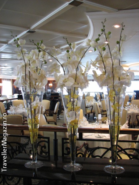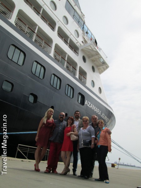 La invitația companiei World Travel am avut ocazia de a vizita și evalua facilitățile acestei nave care a fost inaugurată în 2007 și renovată în 2013. E are o greutate de 30.277 tone, o lungime de de 180 de metri și o lățime de 25 de metri. Numele companiei Azamara Club Cruises înseamnă, în traducere liberă, “steaua mărilor albastre ale lumii” (Aza – Albastru, Mar – Mare, Acamar – cea mai strălucitoare stea ce se poate vedea din insulele grecești). Cu o flotă relativ mică, de doar 2 vase de croazieră moderne și luxoase, din clasa Premium Deluxe, acestea au fost incluse 3 ani la rând în Top 5 cele mai bune vase de croazieră din lume din categoria lor. Pe vasele Azamara Club Cruises luxul se vede cu ochiul liber încă din momentul în care pășești la bord – pornind de la finisajele interioare și culminând cu serviciile personalizate, pline de discreție. Într-o încercare fericită, spunem noi, de a se diferenția în fața competitorilor, compania a ales să ofere itinerarii unice cu șederi prelungite în port, sau plecări noaptea cât mai târziu pentru a permite oaspețiilor să se bucure mai mult de specificul și tradițiile locale. Pe Azamara Journey ne-au impresionat ambianțele speciale existente în restaurantele Discoveries, Aqualina, Prime C, stilul elegant și prietenos, cu mobilier funcțional. O Decorurile, printre ele veritabile galerii de artă, asigură o subliniere personalizată. O altă remarcă a fost făcută în dreptul cram ei care oferă o colecție de circa 8.000 de sticle de vin, ediții limitate ori vinuri rare ce provin din podgorii celebre, din Franța, California, Argentina ori Africa de Sud. Un alt loc care ne-a atras este Looking Glass, un salon special unde vă puteți reîncărca bateriile, la o cană de ceai, după ce ați admirat marea ori v-ați întors din programele opționale. În ceea ce privește partea de întreținere și enterteinment, amintim de Azamara Spa, veritabilă oază de liniște unde puteți alege între proceduri ca thalasoterapie, masaje, tratamente faciale, remodelare corporală etc, ori de Cabaret lounge, unde seara au loc spectacole de divertisment, ori Casino Luxe, unde aveți ocazia să vă încercați norocul dar și să urmăriți, la un televizor cu ecran plat, evoluția echipei preferate.