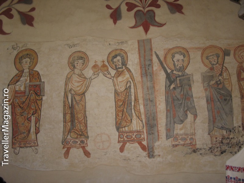 Frescele au frumoase linii bizantine, și lucru nemaiîntîlnit, toate figurile sfinților de pe pereți zîmbesc. Or ști ele de ce! Poate ca să ne atragă atenția că tradițiile și comorile culinare din zona transcarpatică sunt o comoară care poate asigura resurse pentru viitoarele generații.
