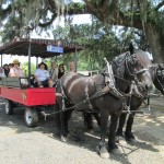 Și bine am făcut pentru că eleganța proprietății Kimberden Farm din Ocala este depășită doar de cea a armăsarilor de rasă antrenați pentru competiții. Industria creată în jurul creșterii cailor de rasă este puternică și profitabilă. În zonă se află cel mai mare număr de cai pe cap de… locuitor din lume. De fapt zona își revendică poziția de capitală a calului în competiție acerbă cu cei din Kentucky. De câștigat au evident toți caii dar, firește și proprietarii lor deveniți foarte bogați în urma tranzacțiilor cu exemplare performante. Ashley Dobbs, Sales & Marketing Coordinator la Ocala Marion County, Florida -, ne atrage atenția că prețul unui exemplar îl poate depăși pe cel al unei limuzine de lux, comandă specială. Desigur și turiștii au de câștigat. Ne-am bucurat din plin de plimbarea cu căruța, cînd la pas când la galop, de-a lungul șoselelor umbrite de stejari seculari, cu ferme risipite pe domenii imense și cai păscând liberi într-o lume desprinsă de ritmul cotidian. Până și semnul de la trecerea de… pietoni îți atrage atenția că pe drumurile de la Ocala, este recomandată reducerea vitezei și oferirea priorității elegantelor cabaline. Kimberden Farm este proprietatea Universității din Florida iar tinerii care vin și lucrează aici urmează cursuri despre creșterea cailor și secrete ale sporturilor ecvestre. Sunt în mare parte studenții care-și completează cunoștințele în timpul vacanțelor, al stagiilor practice și de voluntariat.