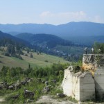 Pădurea e plină de ciuperci, pajiştile de flori şi plante aromate, bune de ceai şi leacuri de suflet. Însă ieşirea la carierele de travertin te lasă fără cuvinte. Muntele se deschide amplu iar carierele apar ca un amfiteatru antic, cu trepte uriaşe. Siluetele oamenilor se pierd printe blocurile de travertin care atrag parcă toată căldura soarelui. Carierele sunt acum abandonate dar travertinul de aici a fost exploatat și folosit la ornamentarea a numeroase instituții din România, inclusiv clădiri precum Palatul Parlamentului sau a unor stații de metrou din București. Valea Vinului se vede paşnică undeva în jos. Stând pe o laterală admir panomara, deschiderea, şi-mi imaginez cum ar fi să văd aici o piesă de teatru. Regina uitată e de acord cu mine: ar fi magnific!
