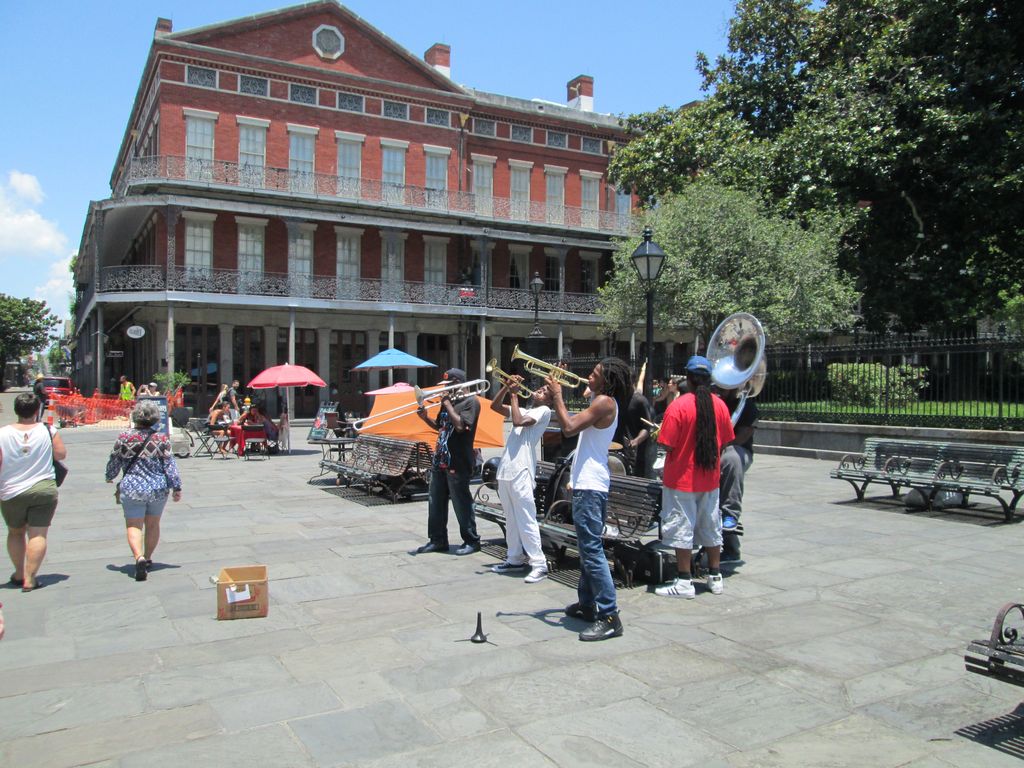 Timpuriu prima orchestră apărând prin anii 1890. Dar formaţia credidată ca fiind ”inventatoarea” acestui magnific gen muzical este ”The Red Hot Peppers” care în 1902 propunea acest nou sunet muzical. Începutul secolului XX era foarte intens muzical la New Orleans. Se cânta peste tot, în baruri, restaurante, străzi dar mai ales în Storyville Jazz Salon amplasat în cartierul cu acelaşi nume. Era de fapt un loc al moravurilor libere, stabilimentele în care se produceau muzicienii fiind denumite ”bordellos” sau mai pudic ”săli de sport”. Popularitatea jazz-ului este în creştere, iar ca o picanterie muzicienii cântau după un paravan aşa că performanţele sportivilor erau ferite de ochii curioşi ai artiştilor. Şi muzica a curs decenii prin instrumentele unor nume sonore care au dat strălucire genului şi s-au afirmat aici: unicul Louis Armstrong şi trompeta sa fermecată, Oscar ”Papa” Celestin şi clasica deja compoziţie din 1911 ”Down by the Riverside”, Papa Jack’ Dixieland Jazz Band care a fost prima formaţie ce a înregistrat primul single de vinil în 1917, şi impresionanta Mahalia Jasckson (gospel). Dar 1917 aduce cu sine nu doar participarea americanilor la primul război mondial ci şi închiderea cartierului ”cu credinţă albastră” şi magnificile sale orchestre. Muzicienii se risipesc, îşi caută alte drumuri în întreaga Americă. Cei mai mulţi se îndreaptă spre Chicago şi New York şi da, pe nave, cântând pentru pasagerii vremii, una dintre ele fiind celebra navă cu zbaturi Natchez care face călătorii turistice pe Mississippi. Muzica e la fel de copleşitoare şi azi pentru că fascinaţia nu are vârstă iar dansul, ne-am convins în două din croazierele noastre, continuă să fie, aici la New Orleans, centrul de atracţie pentru tinerii îndrăgostiţi de o lume ce merită descoperită în permanenţă. Celebra Piaţă Congo face parte azi din Parcul Armstrong, complet refăcut după ravagiile uraganului Katrina, dominat de statuia muzicianului.