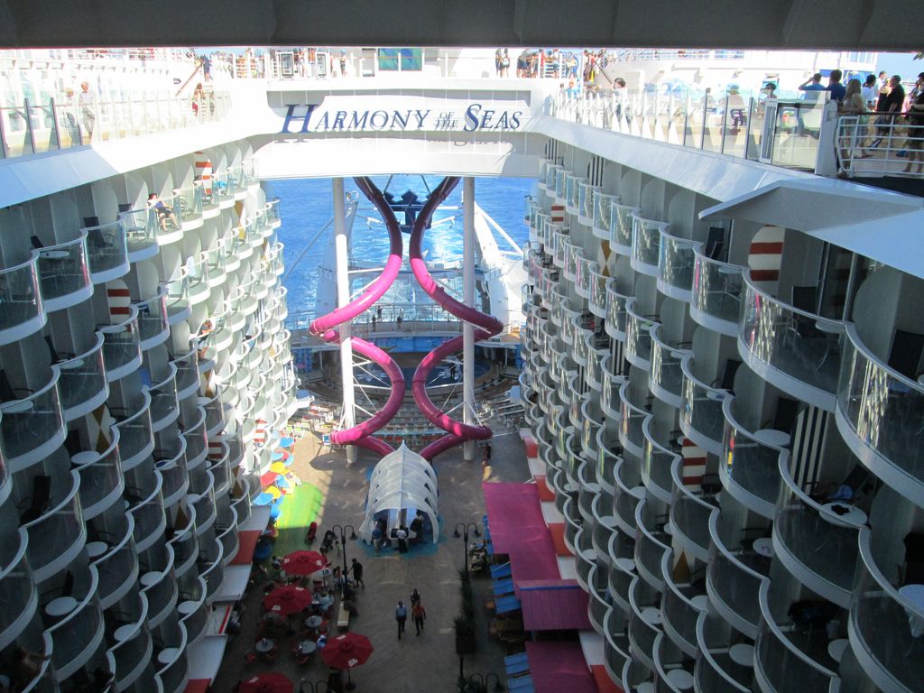 Da, am călătorit cu cea mai mare navă de croazieră din lume! Are 226.000 de tone, o lungime de 362 de metri. Harmony of the Seas face parte din cea mai mare, şi la propriu şi la figurat, familie de vase din lume – Oasis Class. Ea are două “surori gemene” ceva mai mici – Oasis şi Allure.