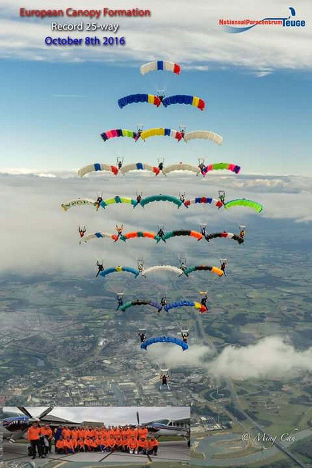 Federaţia Aeronautică Internaţională a omologat un nou record european de paraşutism la categoria formaţii mari – lucru relativ pe cupolă – 25 de paraşutişti. Saltul de record a fost realizat la Teuge în Olanda, de o echipă internaţională din care au făcut parte şi reprezentanţii ţării noastre Sorin Enghel şi Ciprian Drobotă, componenţi ai formaţiei reprezentative de paraşutism „Blue Wings” a Aeroclubului României – ne-a informat directorul general George Rotaru.