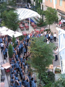 Dar poţi trăi şi o aventură… montană. Între etajele 15 şi 16 se află doi pereţi abrupţi pregătiţi pentru căţărători. Climbing-ul este la putere. Aşa că poţi să-ţi savurezi liniştit hamburger-ul ori hotdog-ul, la restaurantul Johnny Rockets, sau meniul de la Rita’s Catina – iute, condimentat, mexican -, şi să-i urmăreşti pe temerari, cum abordează la câţiva zeci de metri deasupra capului tău, suprafeţele dificile.