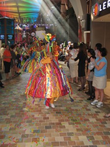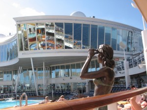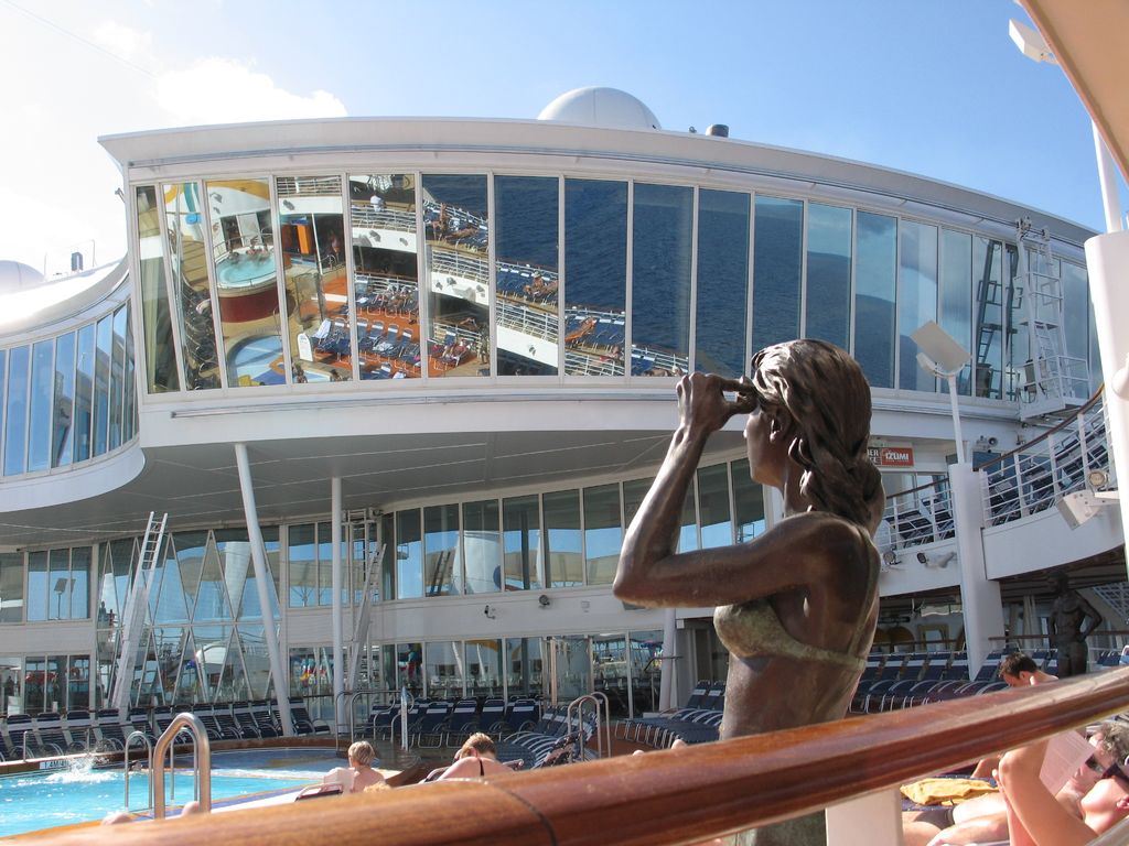 Ne aflăm pe Boardwalk. O punte în aer liber unde eşti întâmpinat de o expoziţie de sculptură, înconjurată de o colonie de pescăruşi de metal, o impresionantă creaţie artistică. Spaţiul reproduce atmosfera unui parc de distracţii, iar americanii apreciază acest loc. Aici există amfiteatrul de la Aqua Theater, ce deţine cel mai mare bazin acvatic existent pe vasele de croazieră. Seara au loc spectacole de lumini iar în timpul zilei demonstraţii acvatice ale animatorilor profesionişti. A meritat să facem câteva ture cu caruselul care ne-a amintit de farmecul copilăriei. Şi pentru că ne aflăm şi pe o planetă a copiilor trebuie să spunem că parada cu personajele din filme şi desene animate în vogă, a fost fascinantă. Copiii s-au întâlnit pe Royal Promenade celebrii Shrek, Fiona, care de altfel a devenit mascota lui Allure, Alex, Pinguinul şi Mort din “Madagascar”, Po din “Kung Fu Panda, Hiccup din “How to Train Your Dragon”, prinţi şi prinţese, motanul încălţat etc.